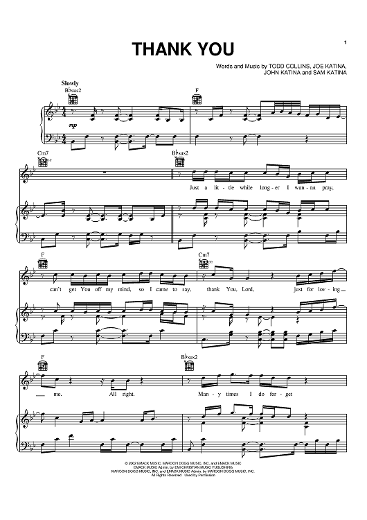 Digital Sheet Music for Thank You by Joe Katina, John Katina, Sam Katina, The Katinas scored for Piano/Vocal/Chords; id:369840