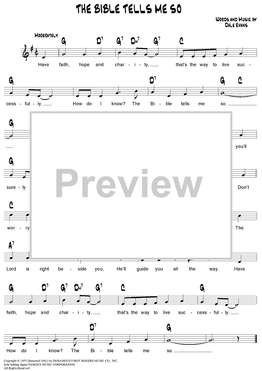 Digital Sheet Music for The Bible Tells Me So by Roy Rogers, Dale Evans scored for Lead Sheet; id:289595