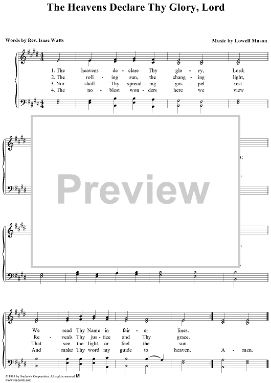 Digital Sheet Music for The Heavens Declare Thy Glory, Lord by Isaac Watts, Lowell Mason scored for Four-part Mixed Chorus; id:118133