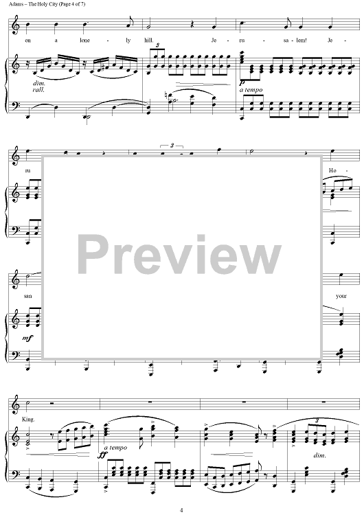 Digital Sheet Music for The Holy City by Stephen Adams, Frederic Weatherly scored for Piano/Vocal; id:250464