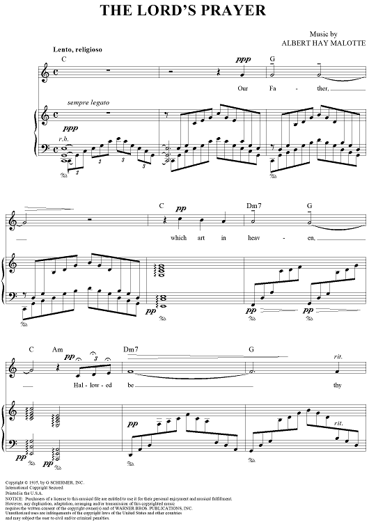 Digital Sheet Music for The Lord's Prayer by Frank Sinatra, Albert Hay Malotte scored for Piano/Vocal/Chords; id:111153