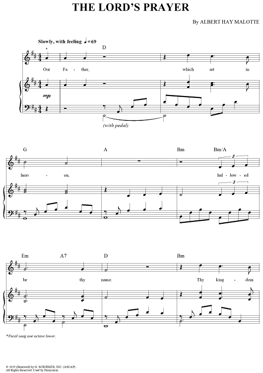 Digital Sheet Music for The Lord's Prayer by Albert Hay Malotte, Anne Murray scored for Piano/Vocal/Chords; id:289115