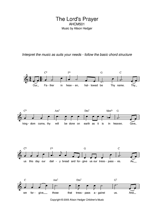 Digital Sheet Music for The Lord's Prayer by Alison Hedger scored for Lead Sheet; id:390349