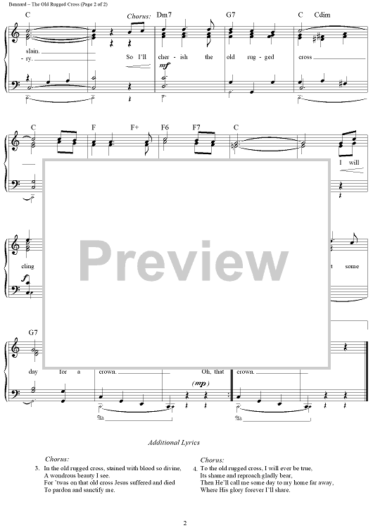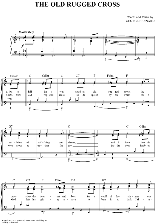 Digital Sheet Music for The Old Rugged Cross by George Bennard scored for Easy Piano/Vocal/Chords; id:432875