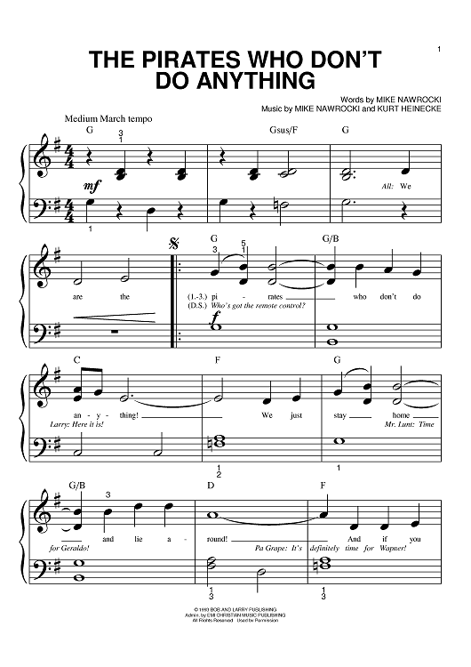 Digital Sheet Music for The Pirates Who Don't Do Anything by Kurt Heinecke, Mike Nawrocki scored for Big Note Piano; id:368995