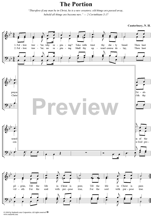 Digital Sheet Music for The Portion by Unknown Writer scored for Four-part Mixed Chorus; id:277470