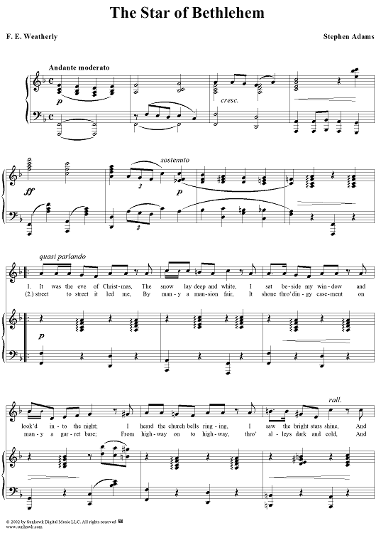 Digital Sheet Music for The Star Of Bethlehem by Stephen Adams, Frederic Weatherly scored for Piano/Vocal; id:270843