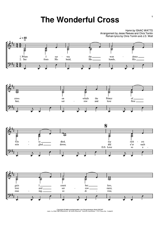 Digital Sheet Music for The Wonderful Cross by Chris Tomlin, Jesse Reeves, J. D. Walt, Phillips, Craig and Dean scored for Piano/Vocal/Chords; id:393772