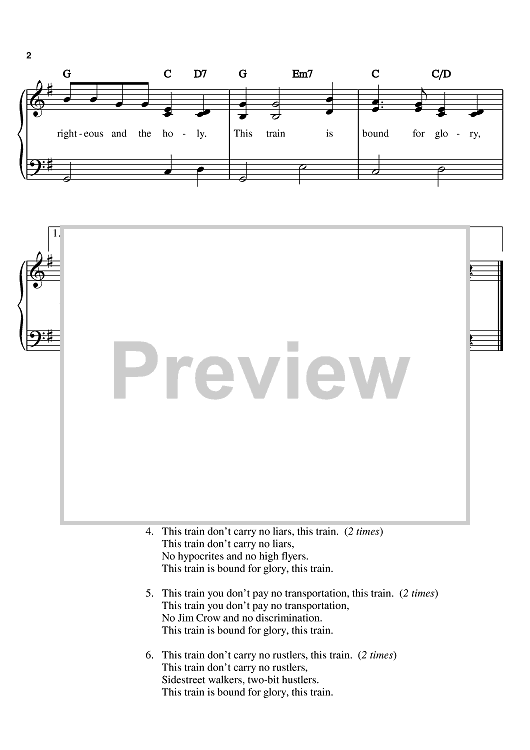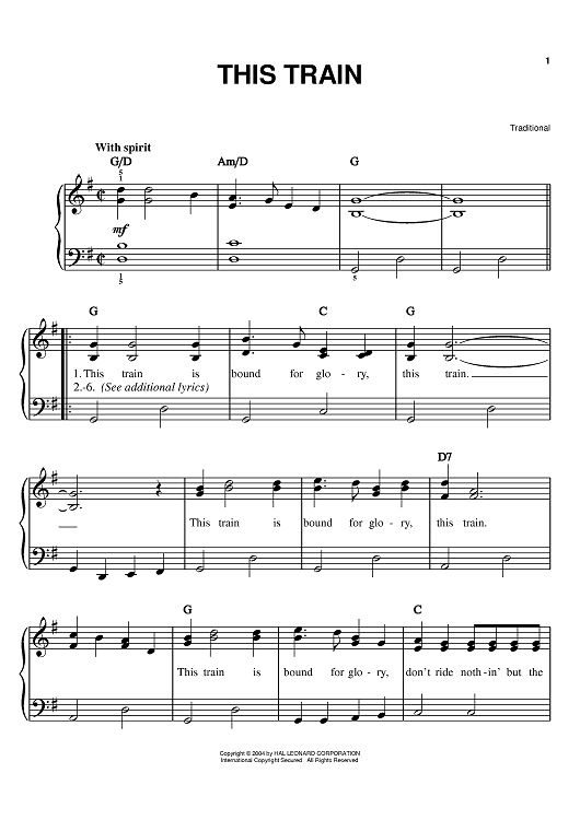 Digital Sheet Music for This Train by scored for Easy Piano; id:373877