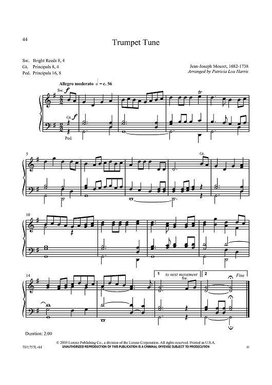 Digital Sheet Music for Trumpet Tune by Jean-Joseph Mouret, Patricia Lou Harris scored for Organ; id:433757