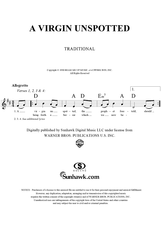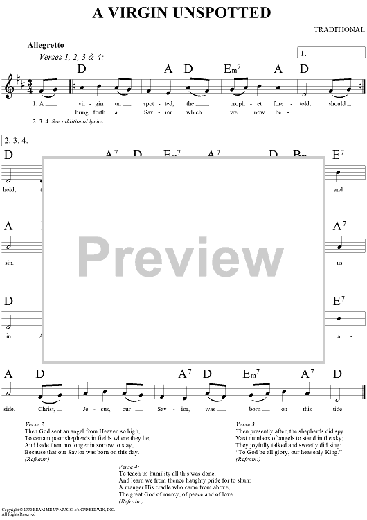 "Virgin Unspotted, A" Sheet Music by Traditional