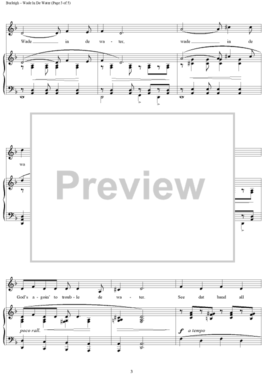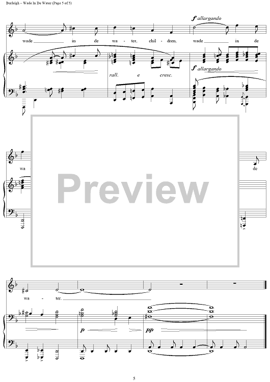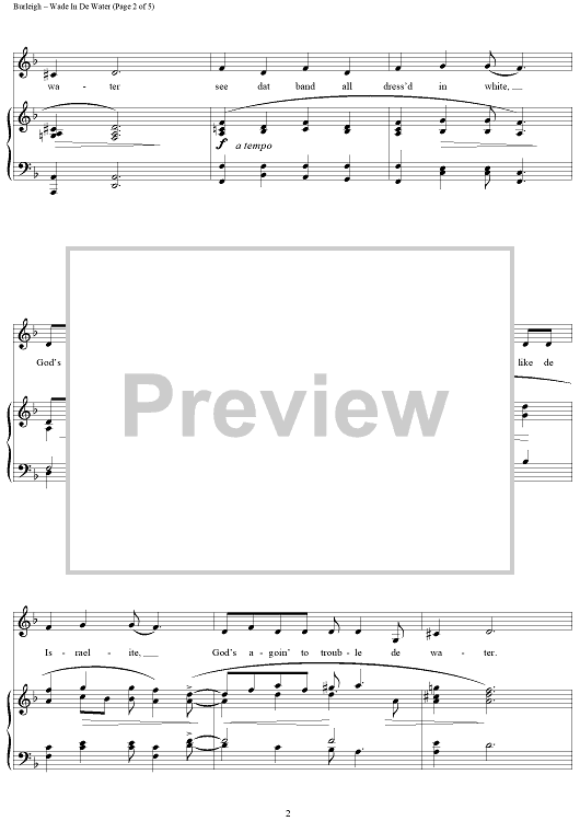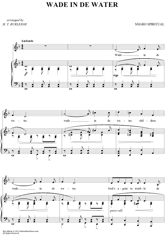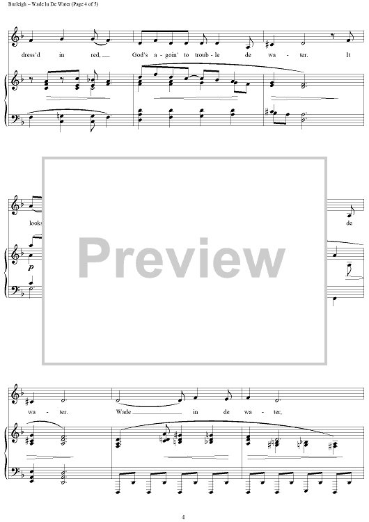 Digital Sheet Music for Wade In De Water by H. T. Burleigh, African American Spiritual scored for Piano/Vocal; id:433701