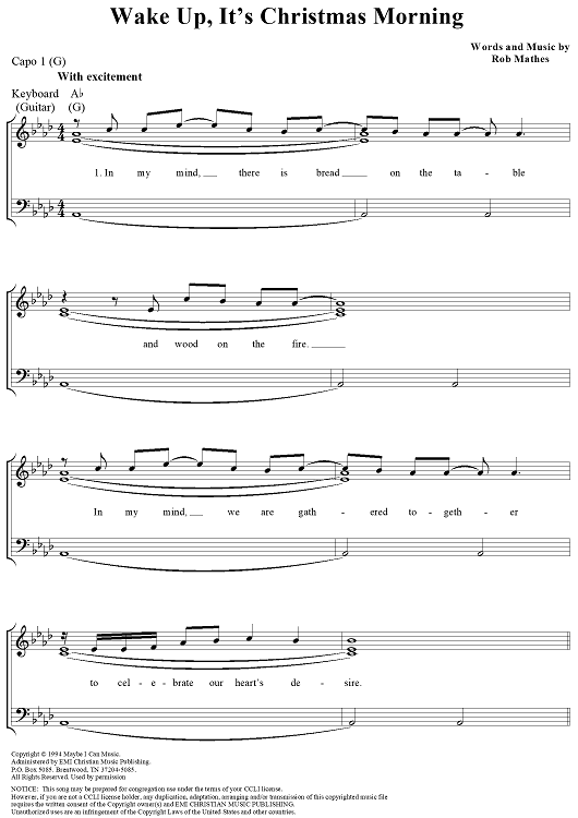 Digital Sheet Music for Wake Up, It's Christmas Morning by Rob Mathes scored for Piano/Vocal/Chords; id:283070