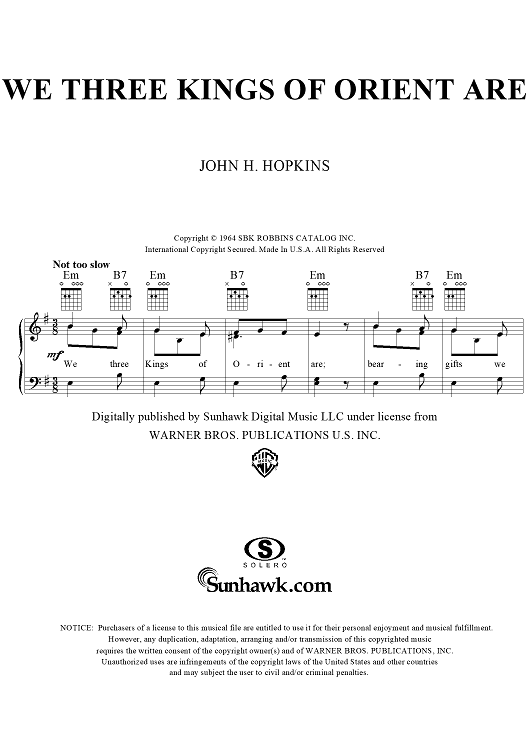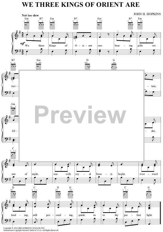 Digital Sheet Music for We Three Kings of Orient Are by John Henry Hopkins, Jr. scored for Piano/Vocal/Chords; id:266321