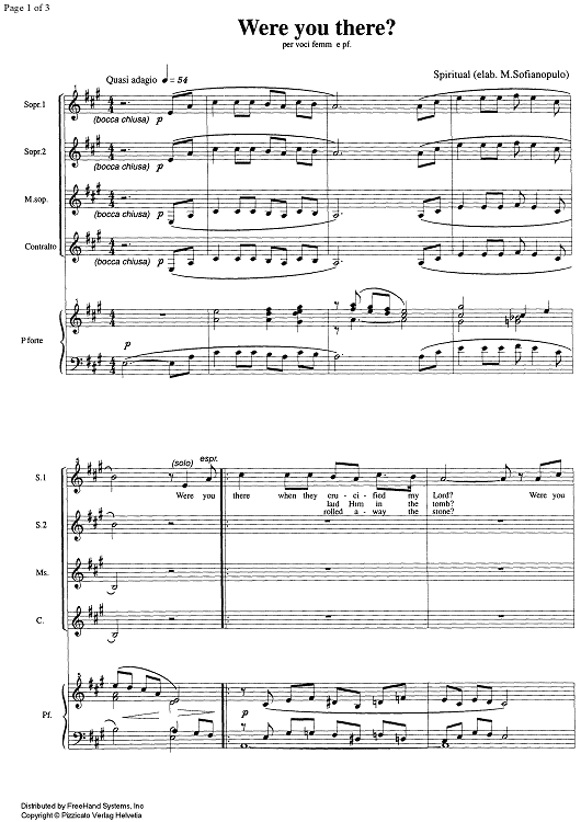 Digital Sheet Music for Were You There? by , Marco Sofianopulo, Traditional scored for Female Chorus/Piano; id:329386