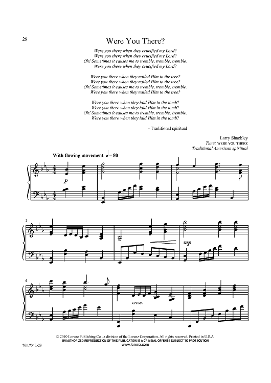 Digital Sheet Music for Were You There? by Larry Shackley, Traditional American Spiritual scored for Piano Solo; id:434161