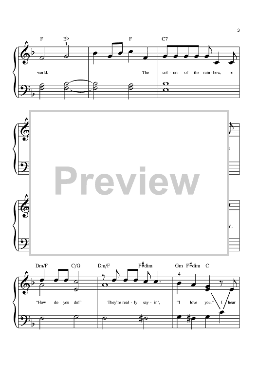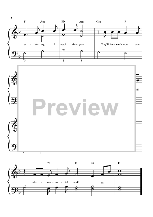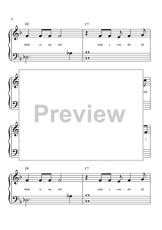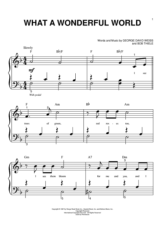 Digital Sheet Music for What A Wonderful World by Louis Armstrong, Bob Thiele, George David Weiss, Anne Murray, Eva Cassidy, Michael Buble, Kenny G scored for Big Note Piano; id:373024