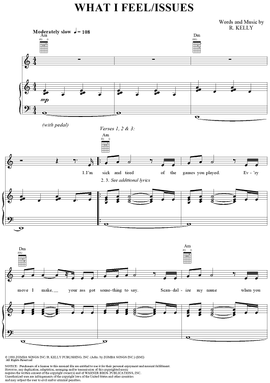 "What I Feel/Issues" Sheet Music by R. Kelly