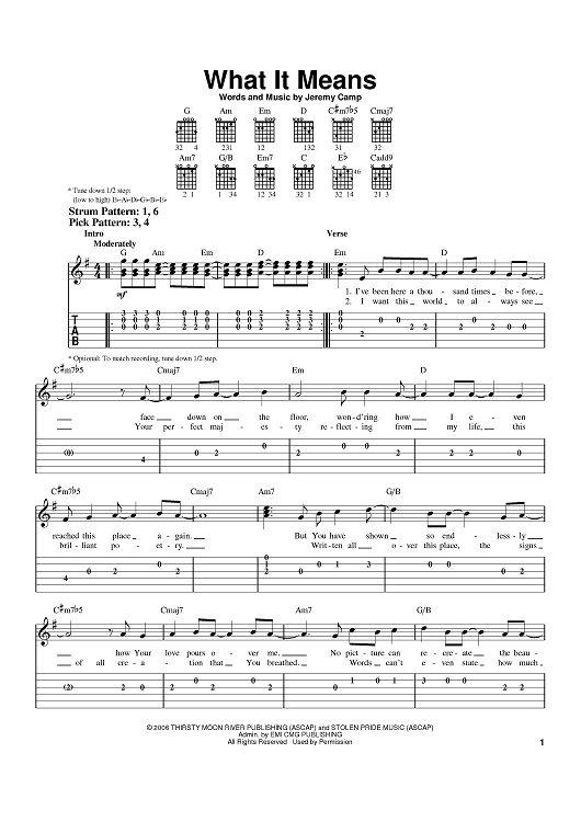 Digital Sheet Music for What It Means by Jeremy Camp scored for Easy Guitar Tab; id:395070