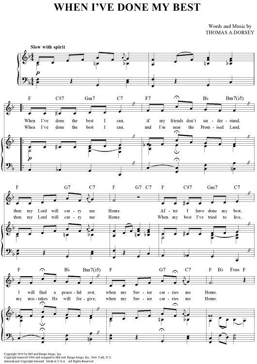 Digital Sheet Music for When I've Done My Best by Thomas A. Dorsey scored for Piano/Vocal/Chords; id:362980