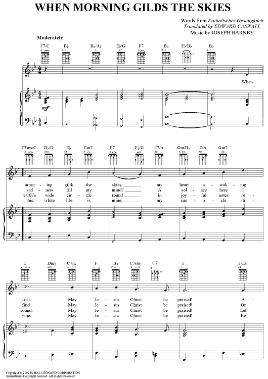 "When Morning Gilds The Skies" Sheet Music by Edward Caswall