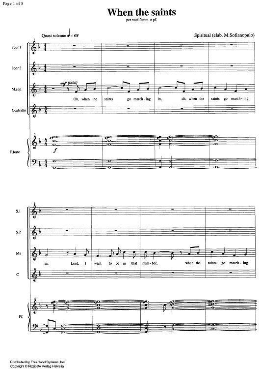 Digital Sheet Music for When the Saints by , Marco Sofianopulo, Traditional scored for Female Chorus/Piano; id:329387