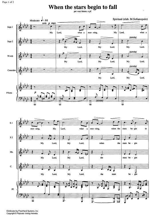 Digital Sheet Music for When the Stars Begin to Fall by , Marco Sofianopulo, Traditional scored for Female Chorus/Piano; id:329381
