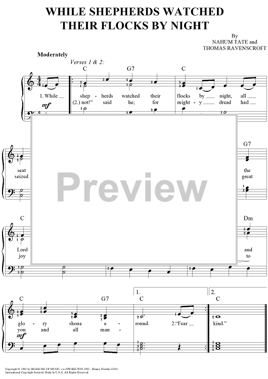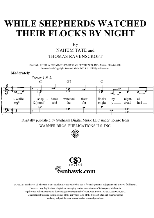 "While Shepherds Watched Their Flocks By Night" Sheet Music by Nahum Tate