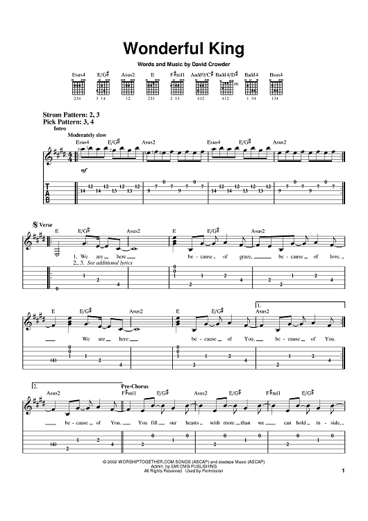 Digital Sheet Music for Wonderful King by David Crowder, David Crowder Band scored for Easy Guitar Tab; id:389445