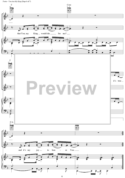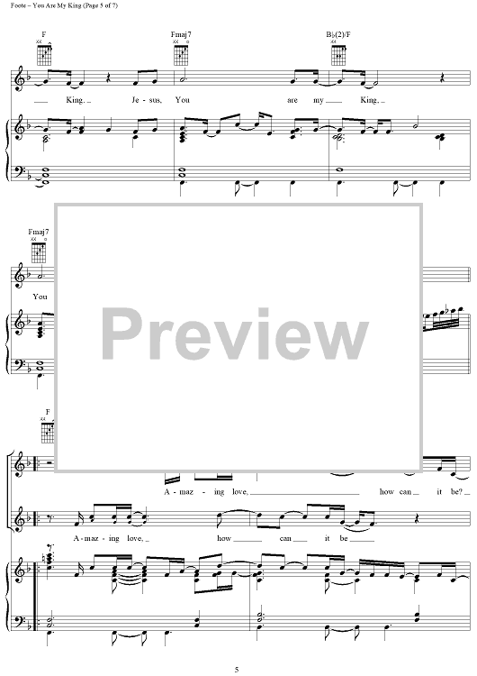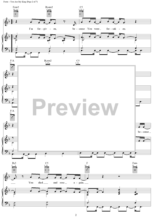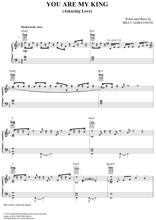 Digital Sheet Music for You Are My King (Amazing Love) by Billy James Foote, Newsboys, Passion Band scored for Piano/Vocal/Chords; id:367297