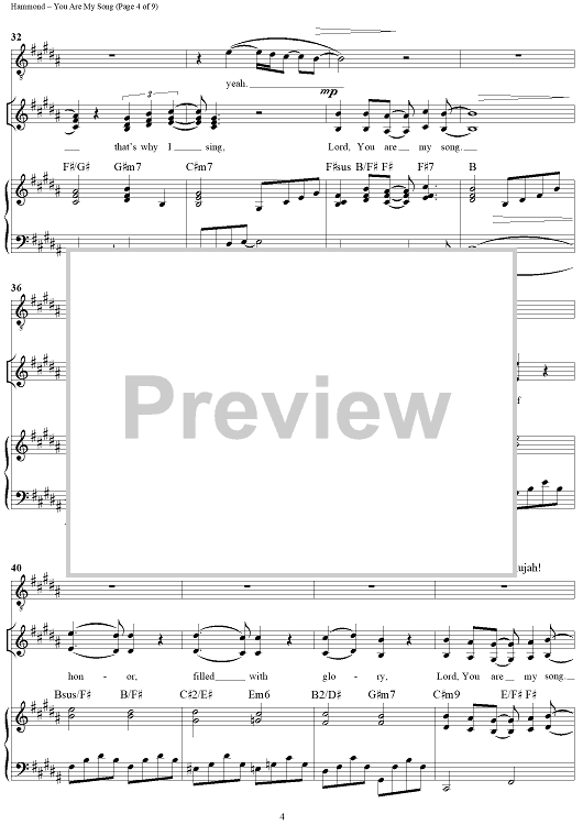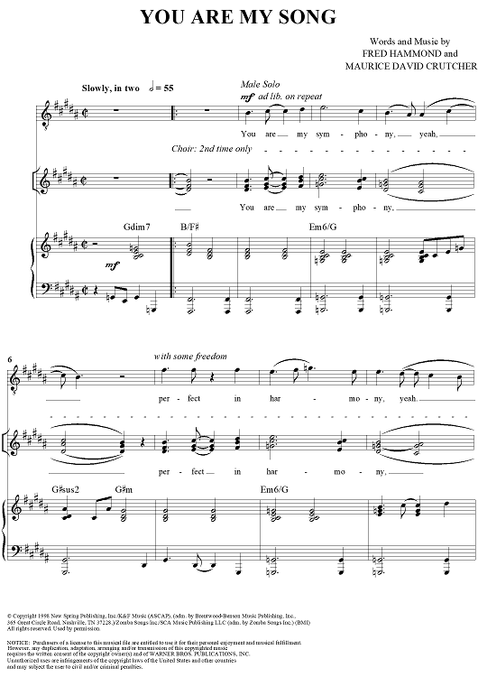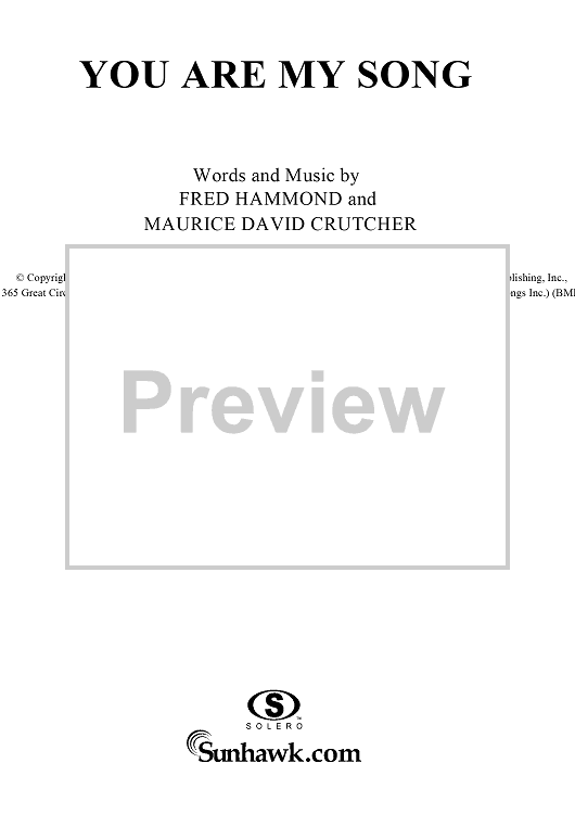 Digital Sheet Music for You Are My Song by Fred Hammond, Maurice David Crutcher, Radical For Christ scored for Piano/Vocal/Chords; id:266868