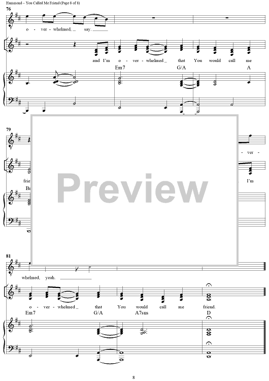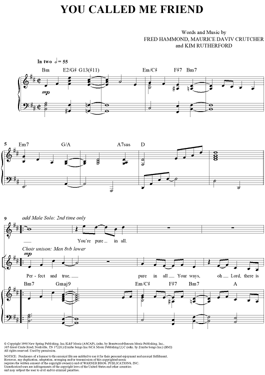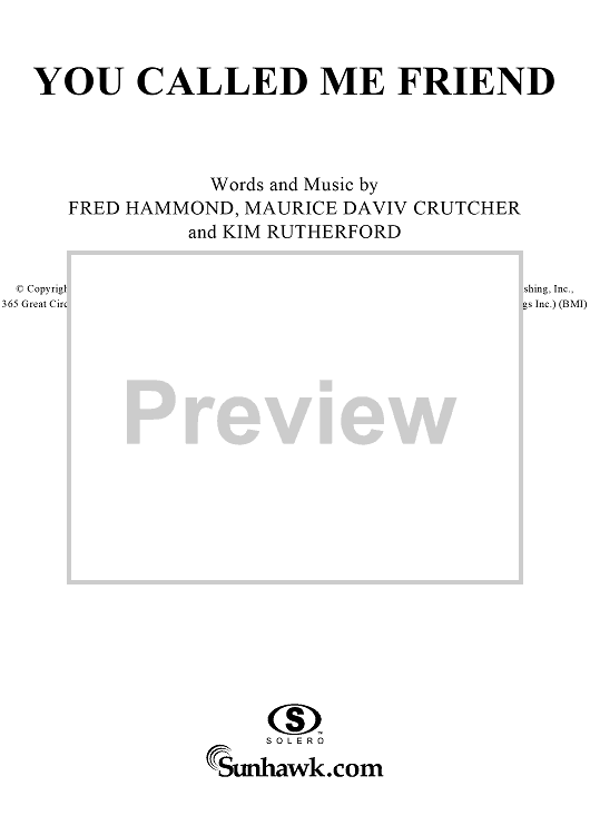 Digital Sheet Music for You Called Me Friend by Fred Hammond, Maurice David Crutcher, Kim Rutherford, Radical For Christ scored for Piano/Vocal/Chords; id:235824