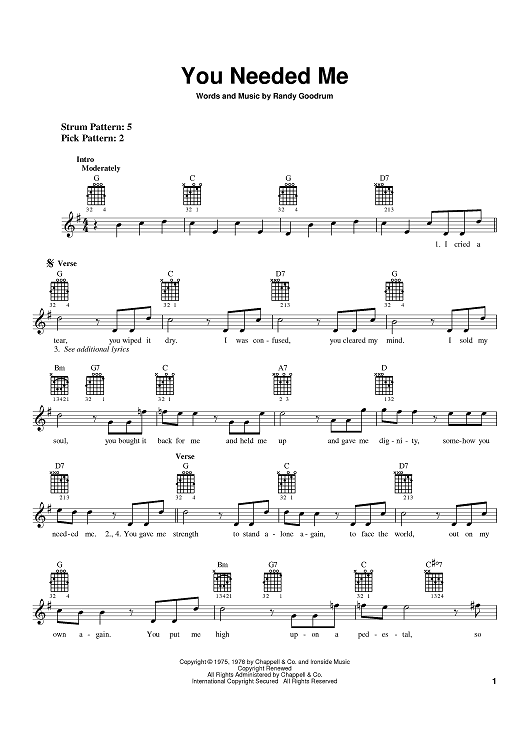 Digital Sheet Music for You Needed Me by Randy Goodrum, Anne Murray scored for Lead Sheet with Guitar Grids; id:383106