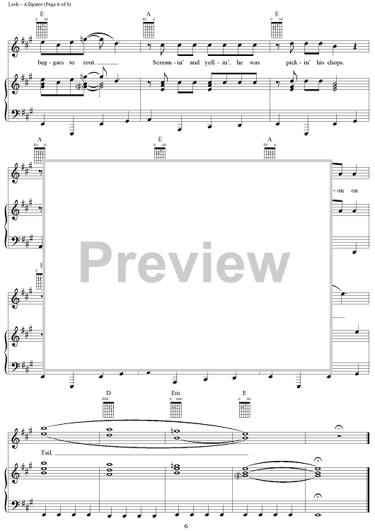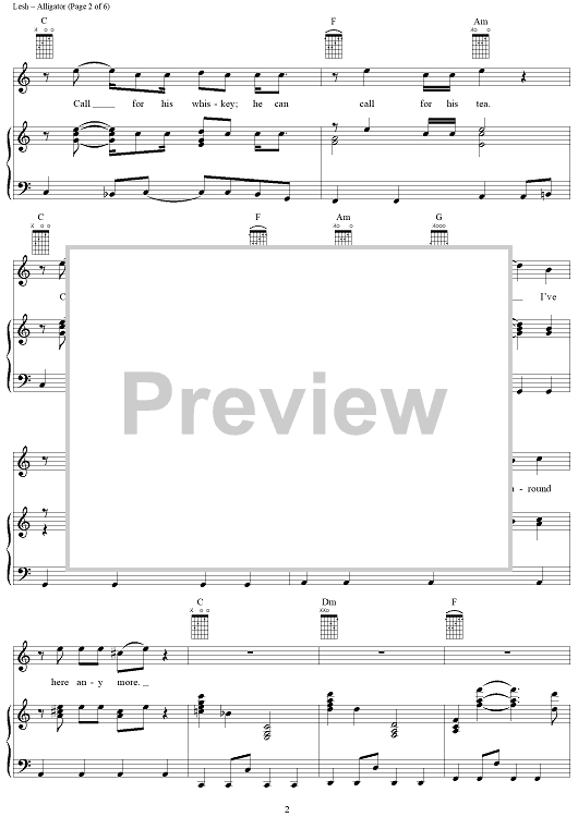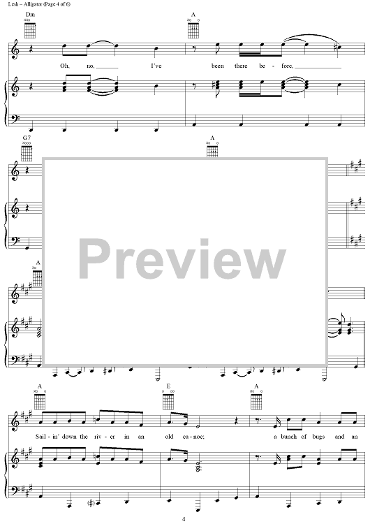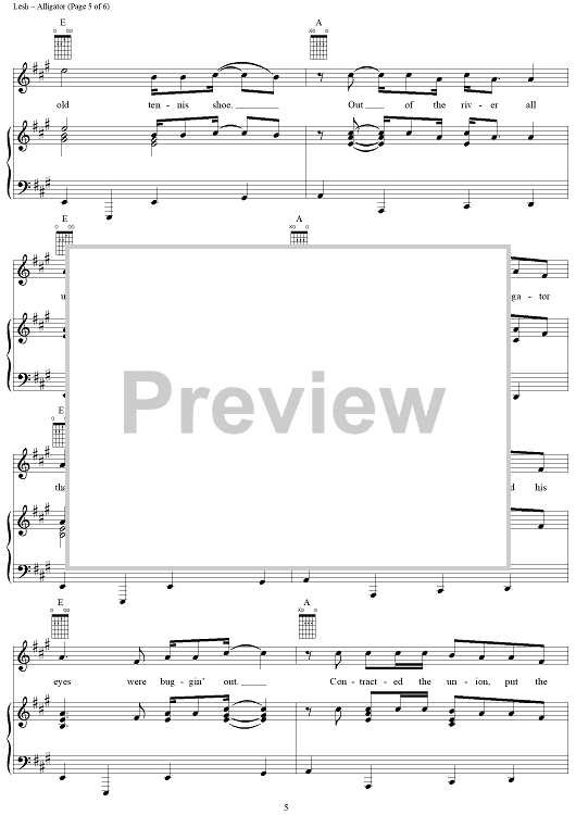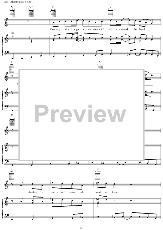 Digital Sheet Music for Alligator by Robert Hunter, Phil Lesh, Ron McKernan, Grateful Dead scored for Piano/Vocal/Chords; id:220372