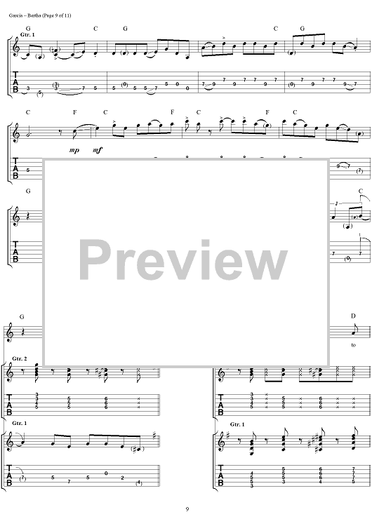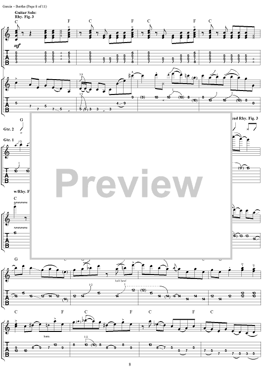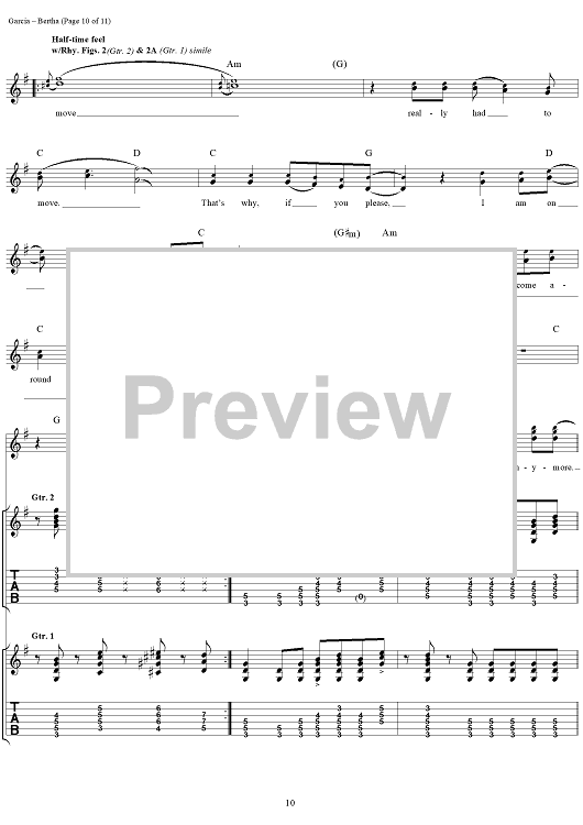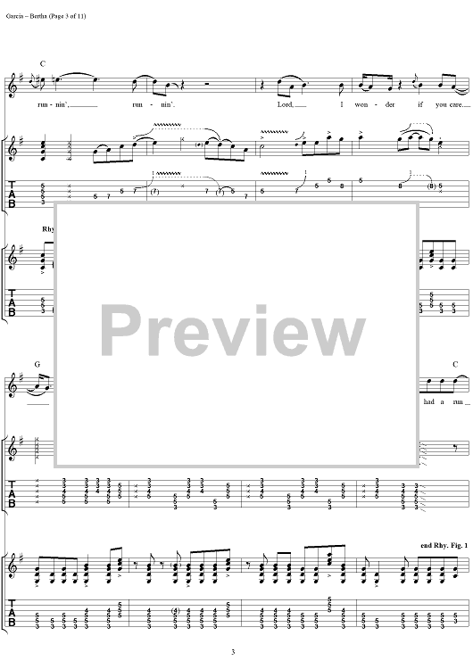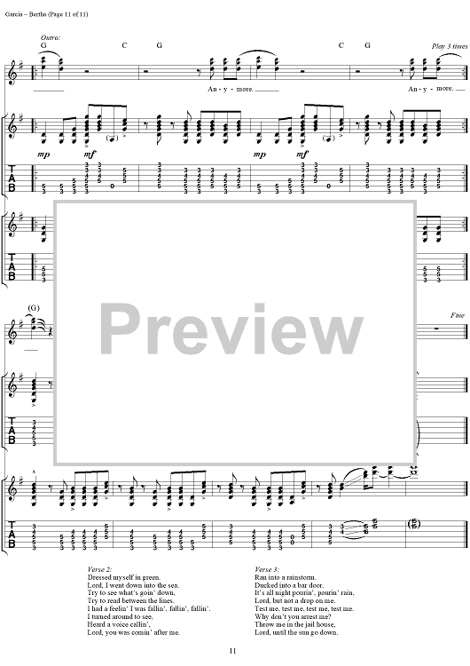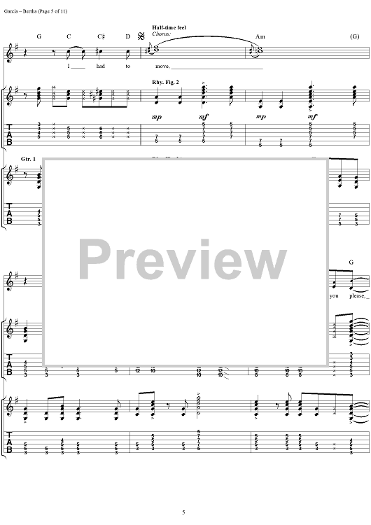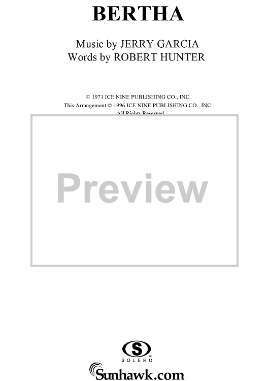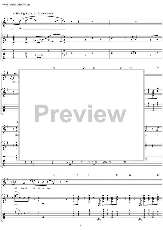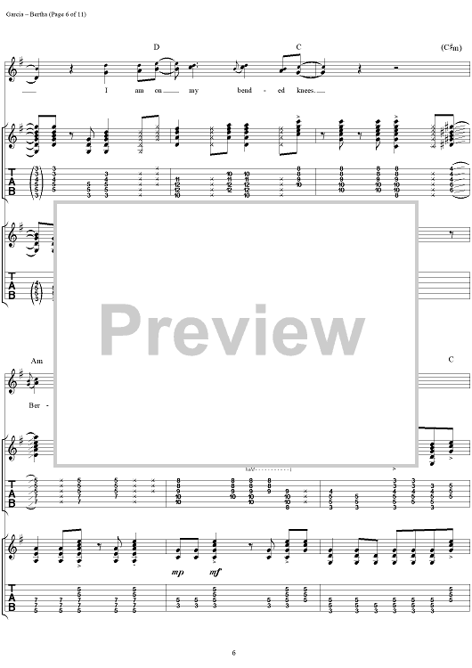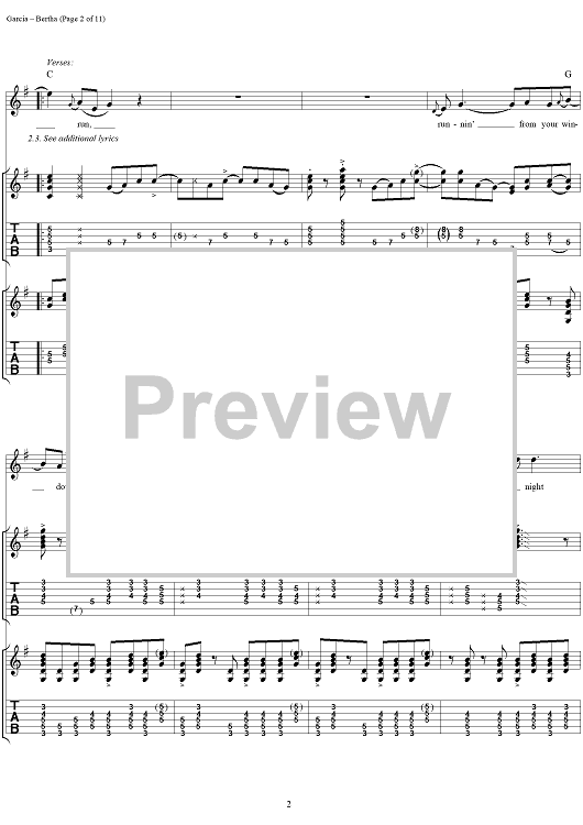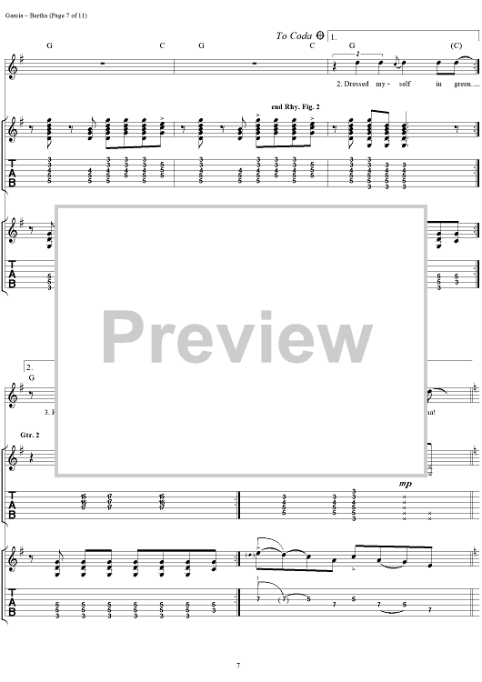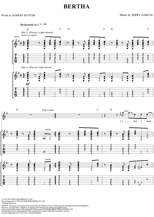 Digital Sheet Music for Bertha by Jerry Garcia, Grateful Dead scored for Guitar Tab/Vocal; id:268921