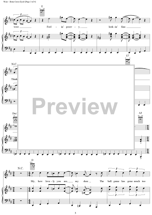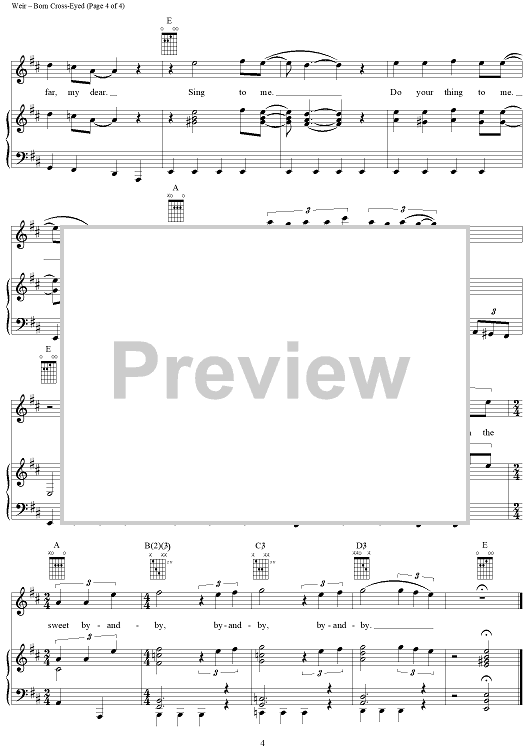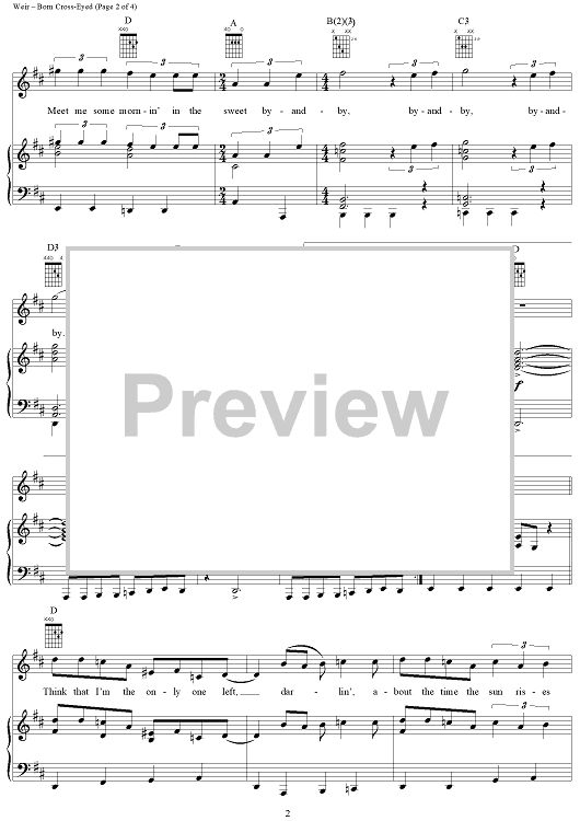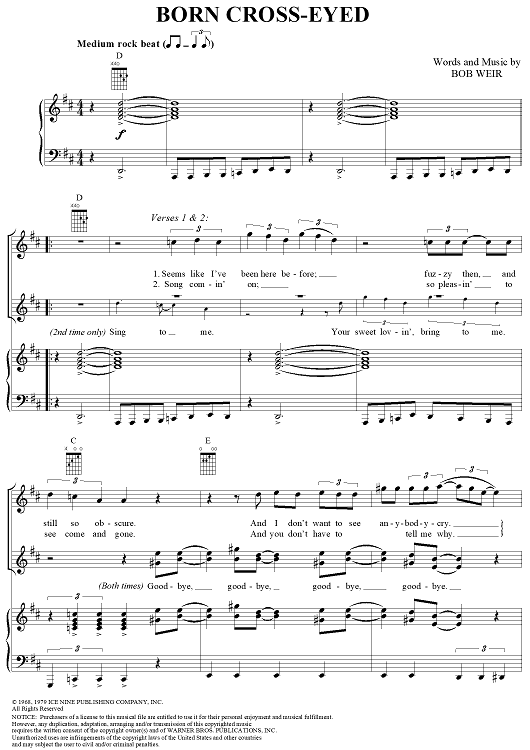 Digital Sheet Music for Born Cross-Eyed by Bob Weir, Grateful Dead scored for Piano/Vocal/Chords; id:250638