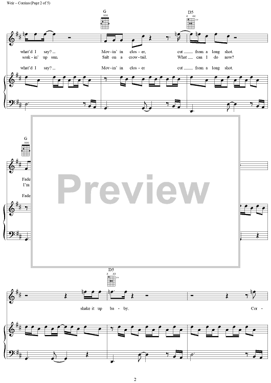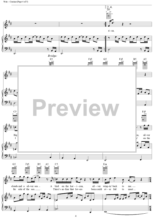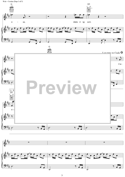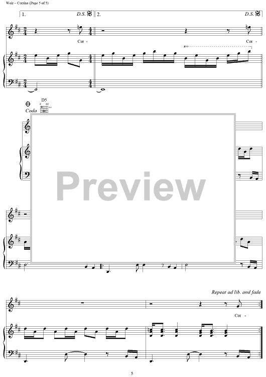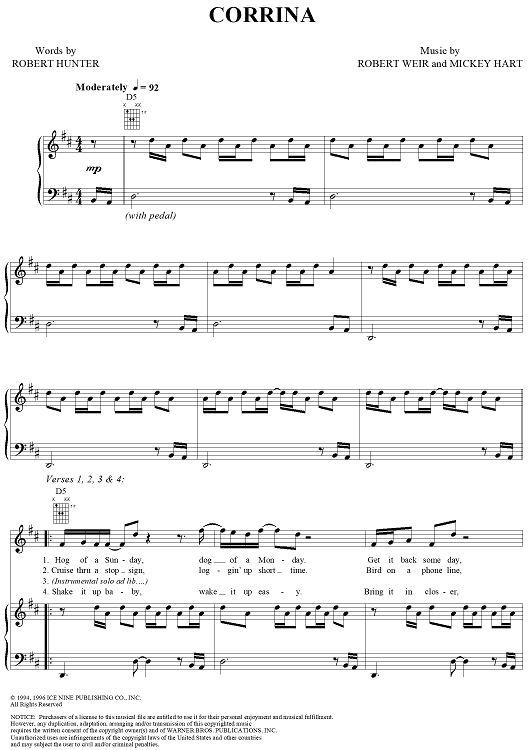 Digital Sheet Music for Corrina by Robert Hunter, Bob Weir, Mickey Hart, Grateful Dead scored for Piano/Vocal/Chords; id:264304