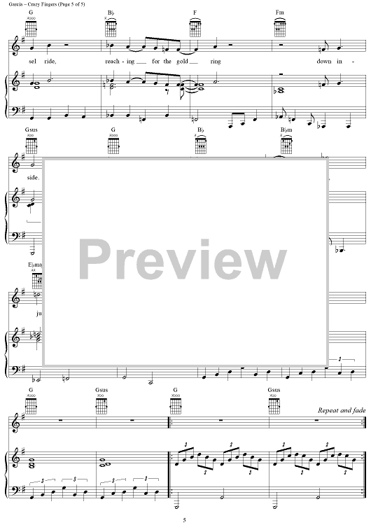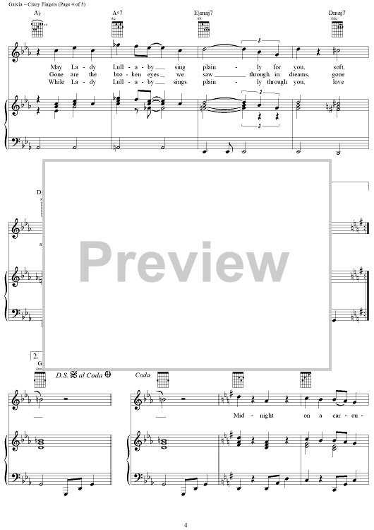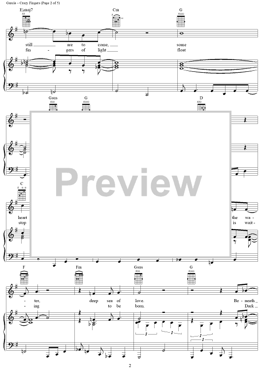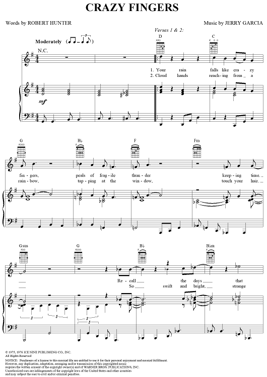 Digital Sheet Music for Crazy Fingers by Jerry Garcia, Robert Hunter, Grateful Dead scored for Piano/Vocal/Chords; id:268749