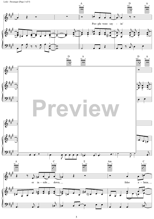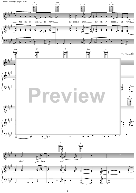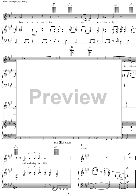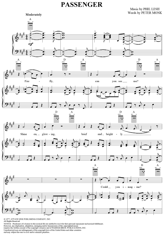 Digital Sheet Music for Passenger by Phil Lesh, Peter Monk, Grateful Dead scored for Piano/Vocal/Chords; id:249863