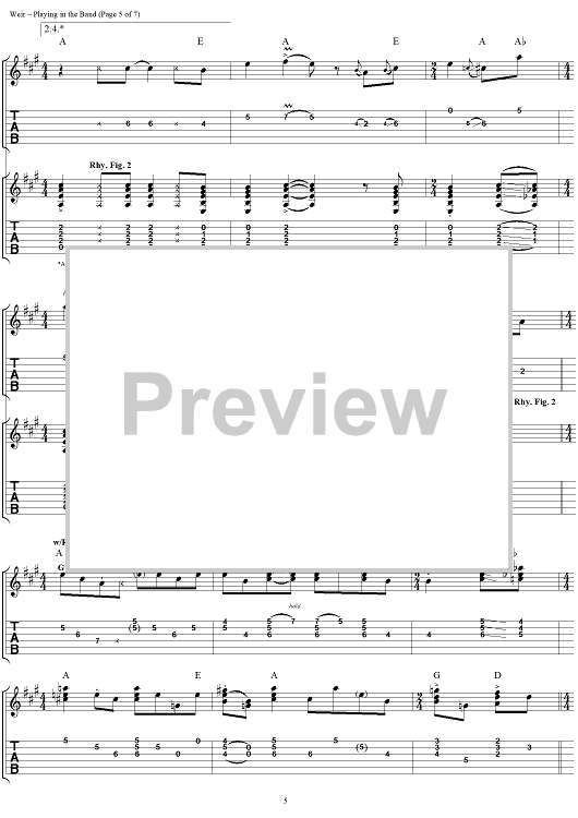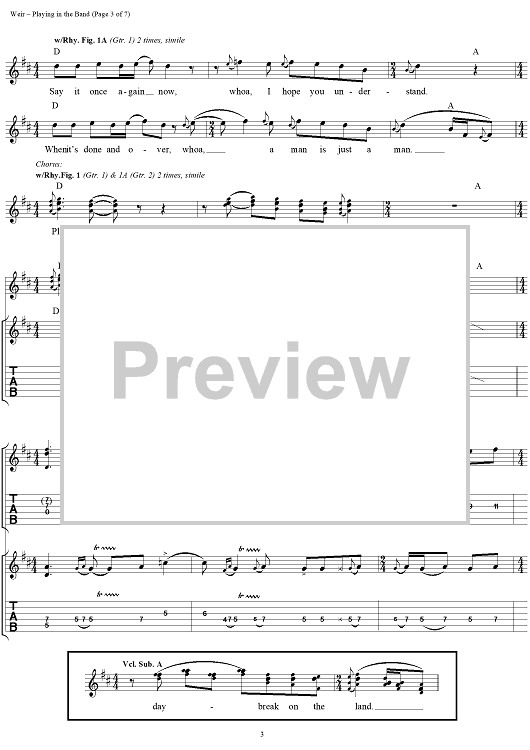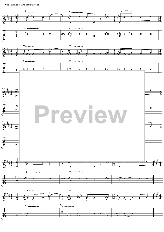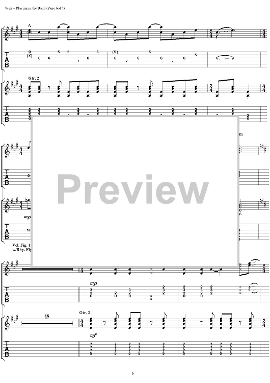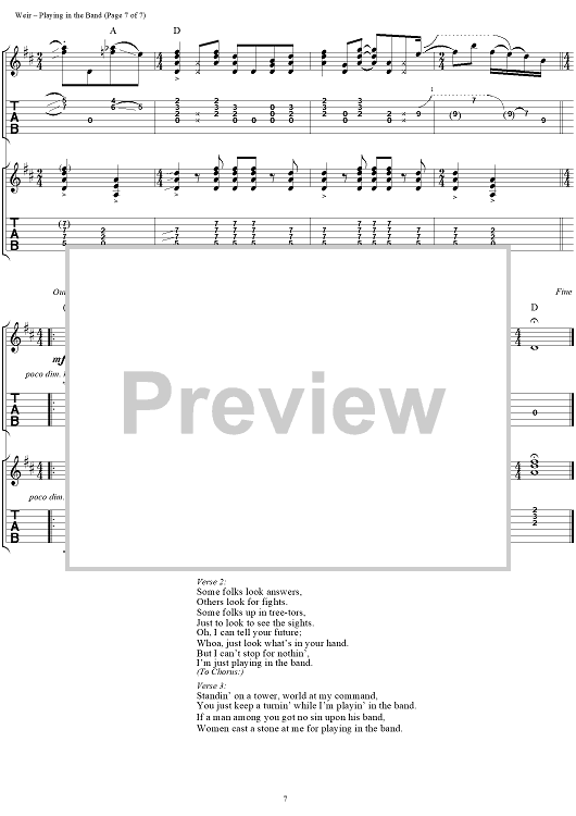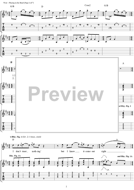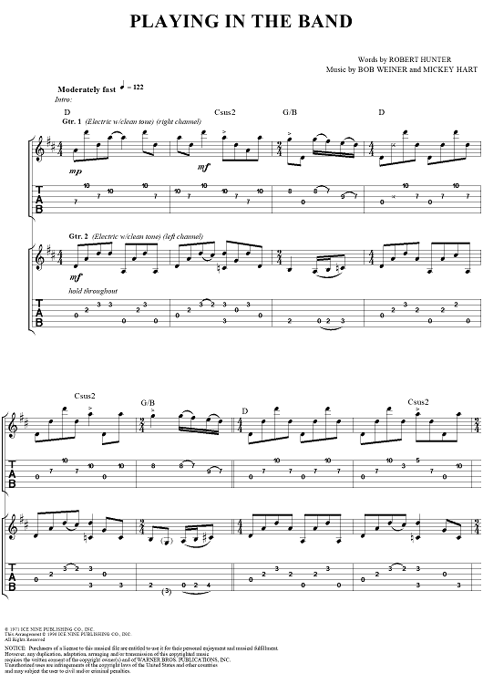 Digital Sheet Music for Playing in the Band by Robert Hunter, Bob Weir, Mickey Hart, Grateful Dead scored for Guitar Tab/Vocal; id:264080
