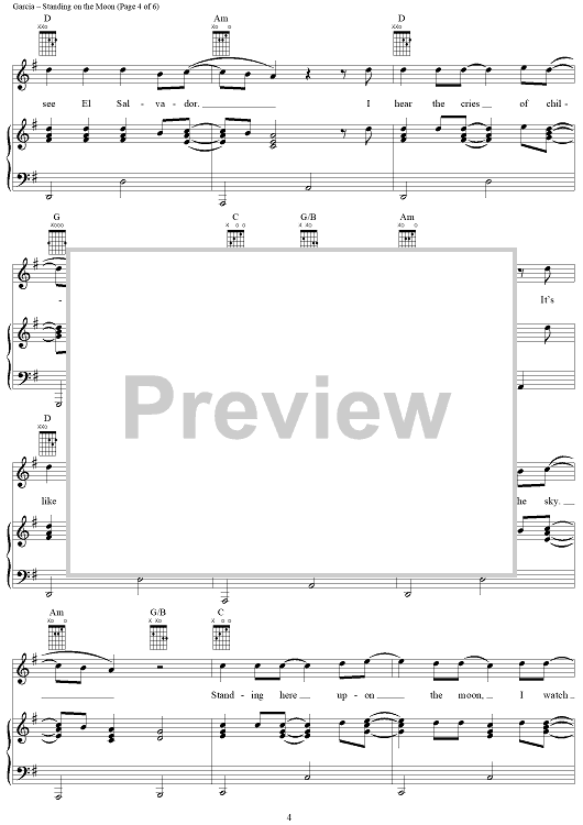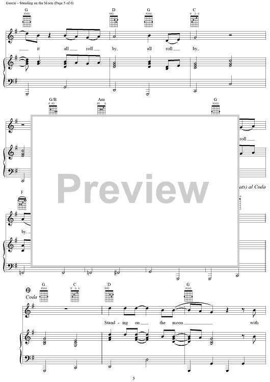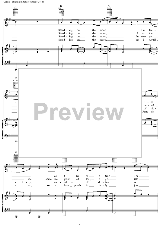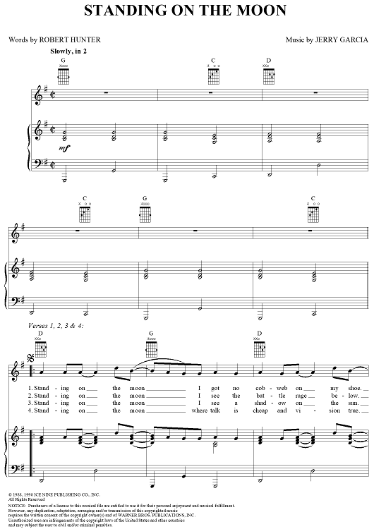 Digital Sheet Music for Standing on the Moon by Jerry Garcia, Robert Hunter, Grateful Dead scored for Piano/Vocal/Chords; id:234739