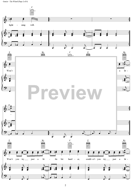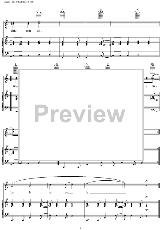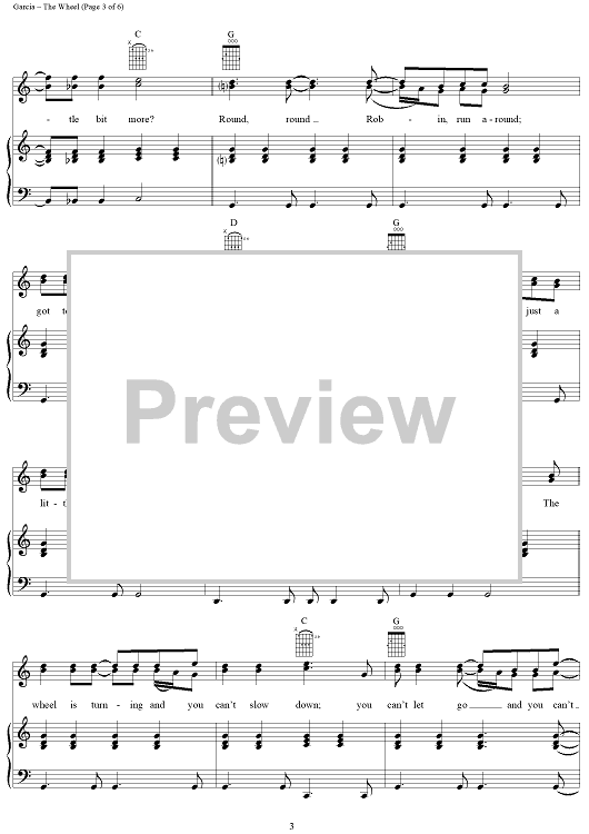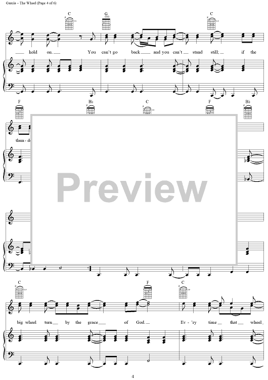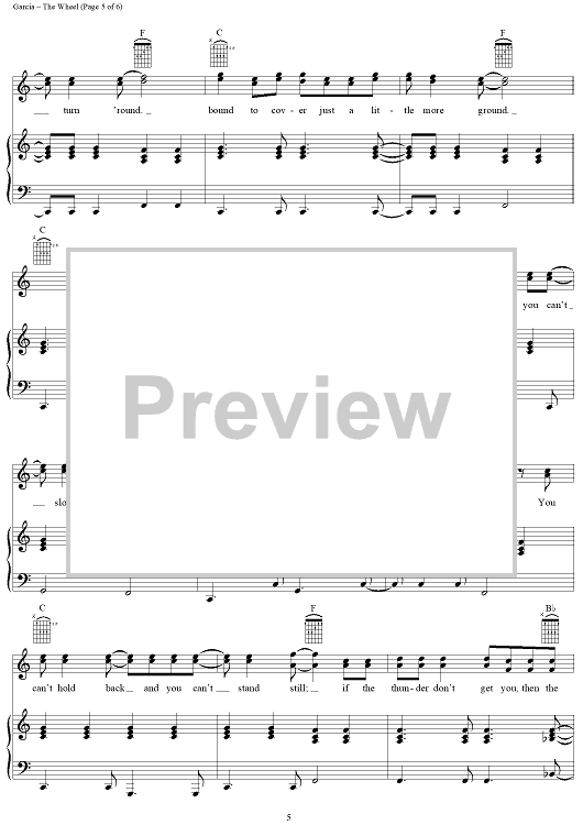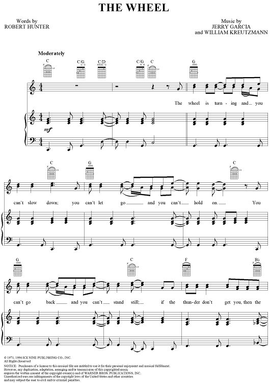 Digital Sheet Music for The Wheel by Jerry Garcia, Robert Hunter, Bill Kreutzmann, Grateful Dead scored for Piano/Vocal/Chords; id:241163
