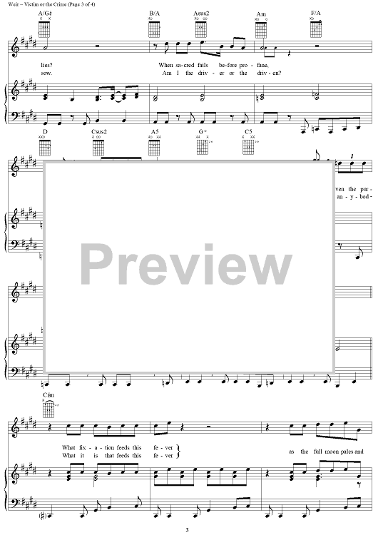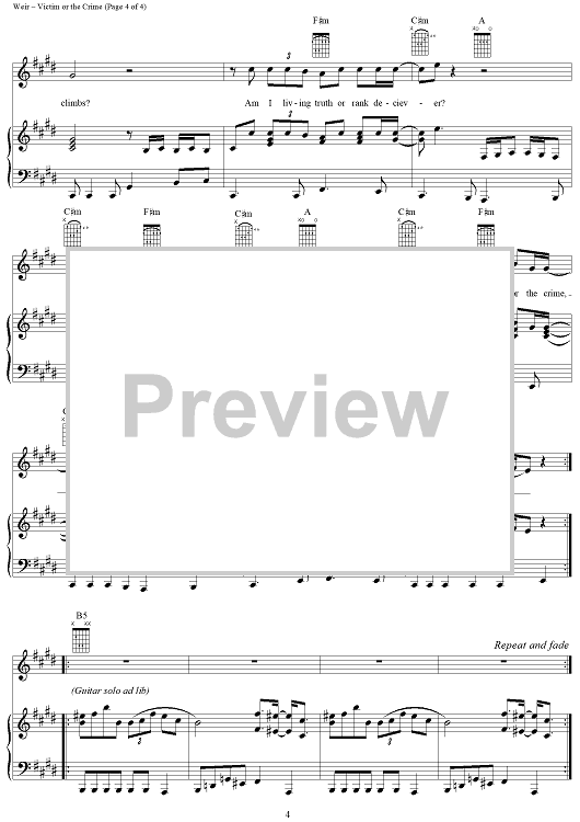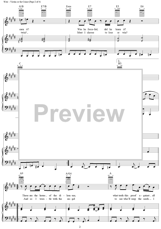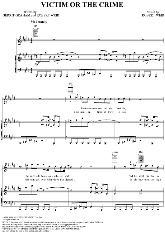 Digital Sheet Music for Victim or the Crime by Bob Weir, Gerrit Graham, Grateful Dead scored for Piano/Vocal/Chords; id:220373