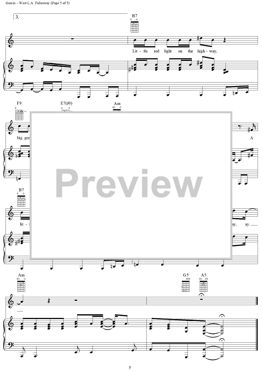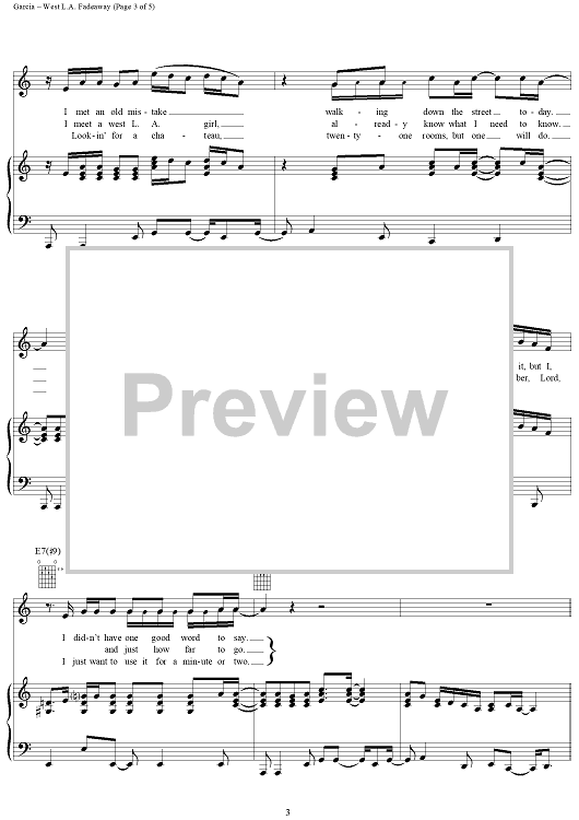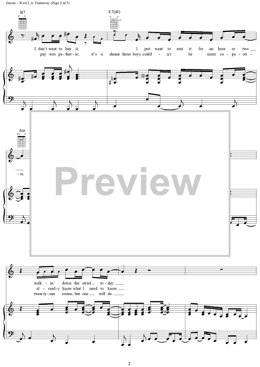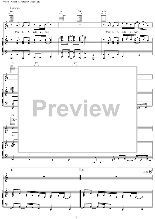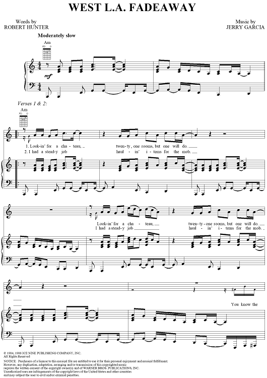 Digital Sheet Music for West L.A. Fadeaway by Jerry Garcia, Robert Hunter, Grateful Dead scored for Piano/Vocal/Chords; id:241283