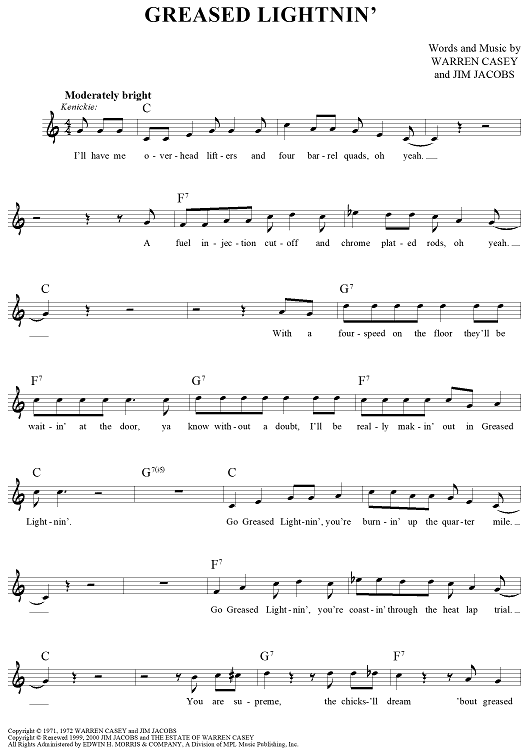 Digital Sheet Music for Greased Lightnin' by Warren Casey, Jim Jacobs scored for Lead Sheet; id:444409