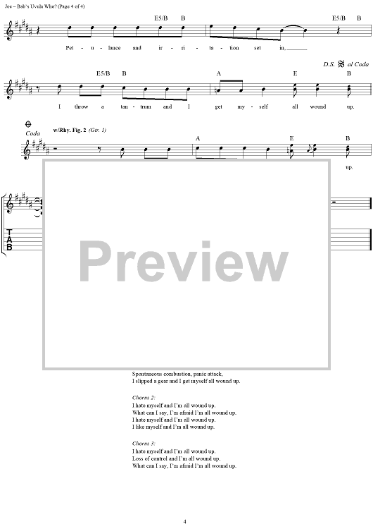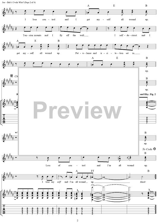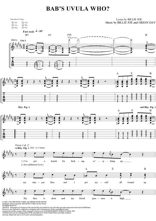 Digital Sheet Music for Bab's Uvula Who? by Billie Joe Armstrong, Green Day scored for Guitar Tab/Vocal; id:113019
