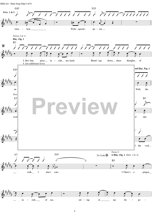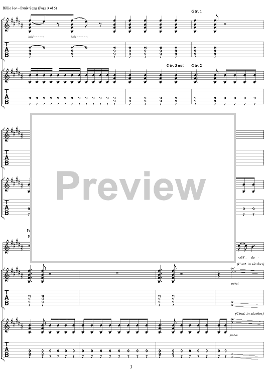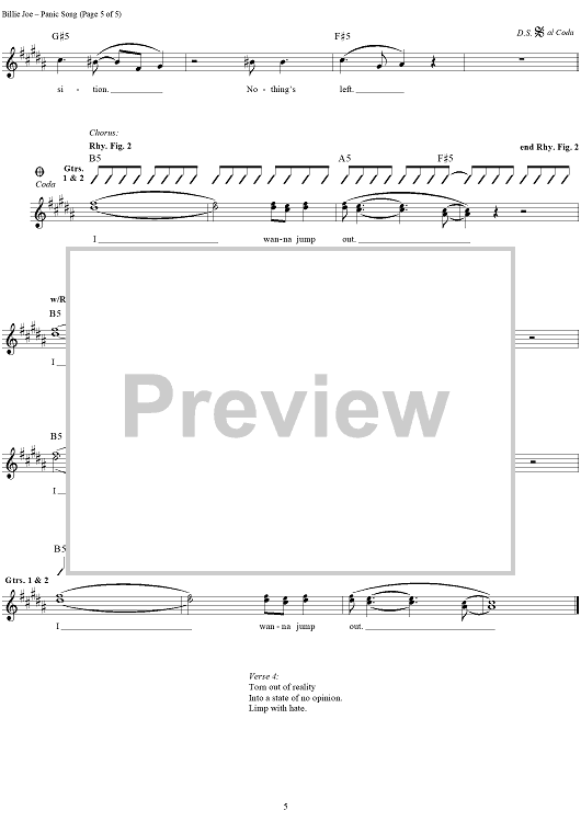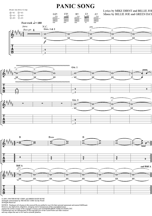 Digital Sheet Music for Panic Song by Billie Joe Armstrong, Mike Dirnt, Green Day scored for Guitar Tab/Vocal; id:154753