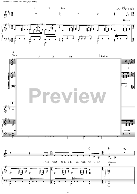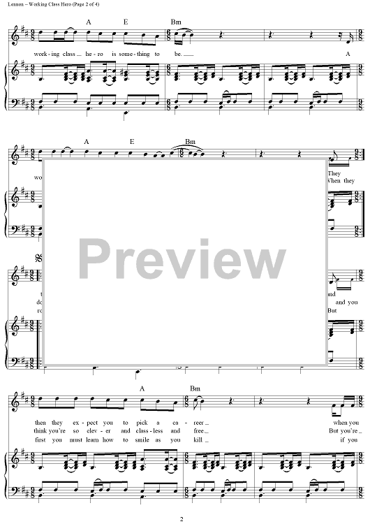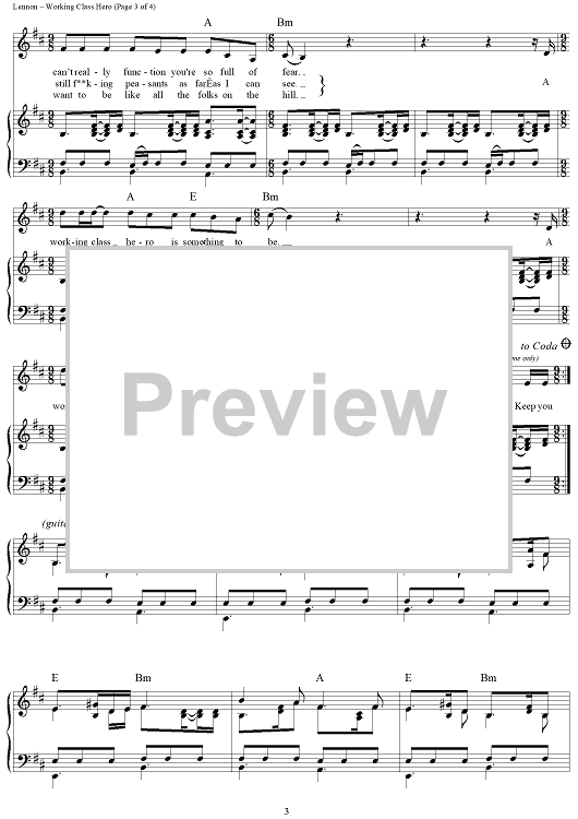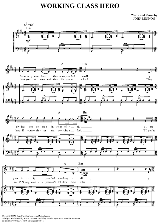 Digital Sheet Music for Working Class Hero (Green Day version) by John Lennon, Green Day scored for Piano/Vocal/Chords; id:362584