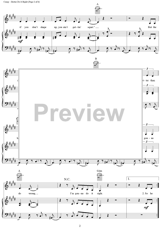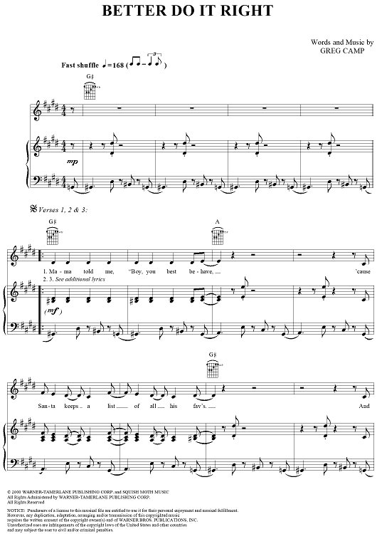 Digital Sheet Music for Better Do It Right by Smash Mouth, Greg Camp scored for Piano/Vocal/Chords; id:284070