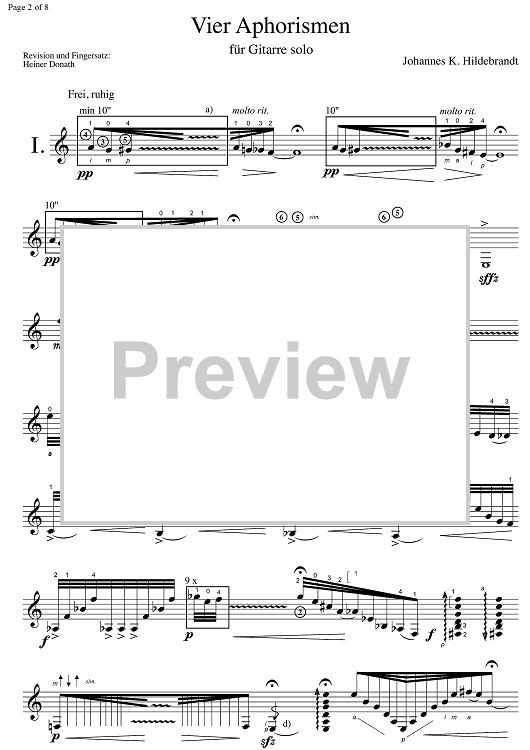 Digital Sheet Music for 4 Aphorismen (Four Aphorisms) by , Johannes K. Hildebrandt scored for Guitar; id:353854